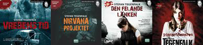 Min kommentar: Det är inte meningen att det ska bli en vana att recensera böcker i grupp på det här sättet. Men nu har det fallit sig naturligt tå gånger i rad. Stefan Tegenfalks böcker har gått mig förbi av någon anledning. Jag tycker jag har hyffsad koll på nya kriminalromaner som kommer ut i Sverige och har säkert sett dessa men har först nu ”sätt tänderna i dem”. Det är kul att komma in i en serie och få 4 böcker på rad med samma författare och samma uppläsare. Det är föresten enda gången jag väljer att lyssna på samma uppläsare två böcker i rad, brukar undvika det annars. Nu till böckerna, grund uppsättningen äldre vis manlig kriminalkommissarie och ung hungrig kvinnlig aspirant känns som man har sätt det förut. Men min erfarenhet är att den uppsättningen kan vara hur klyschig som helst, det är vilket liv man ger karaktärerna som räknas. Och där lyckas Tegenfalk tycker jag. Till skillnad från många andra liknande serier så bygger handlingen mycket på den föregående boken, vilket i fallet att man slukar hela serien bara är ett stort plus. Jag tycker att serien började lite sämre än den slutade. Jag hade svårt att tro riktigt på upplägget i Vredens tid, det var lite för overkligt. Men efterhand så fick man mer och mer och Nirvanaprojektet var riktigt bra. Även om betygen skiftar från 3 till 5 är det en riktigt bra serie.